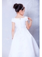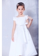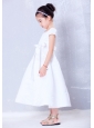 Home >  Flower Girl Dresses > Lovely White A-line Scoop Beading and Bow Flower Girl Dress Tea-length Taffeta