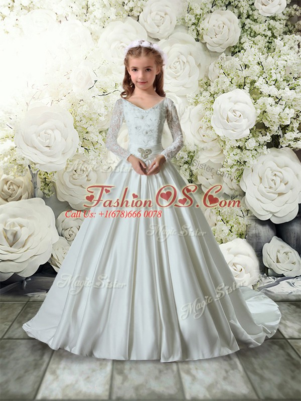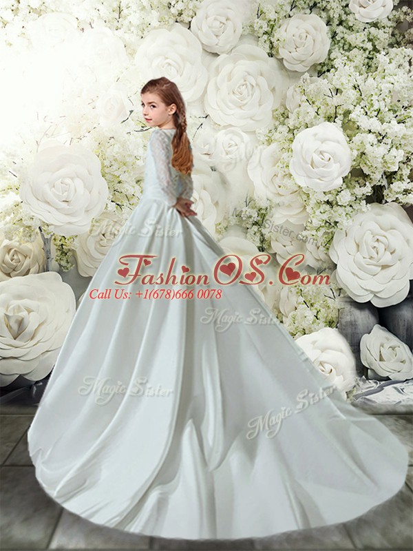 Lovely White Long Sleeves Lace Clasp Handle Flower Girl Dresses for Less