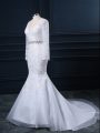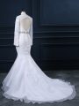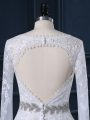Lovely White Organza Backless Wedding Gown Long Sleeves Brush Train Beading and Lace