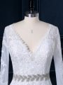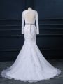 Home >  Wedding Dresses >  Latest Wedding Dresses > Lovely White Organza Backless Wedding Gown Long Sleeves Brush Train Beading and Lace