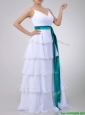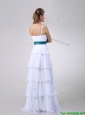 Lovely White Prom Dress with Ruffled Layers and Turquoise Belt