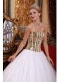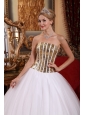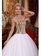 Lovely White Sweet 16 Dress Strapless Tulle Squins Ball Gown