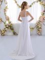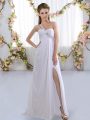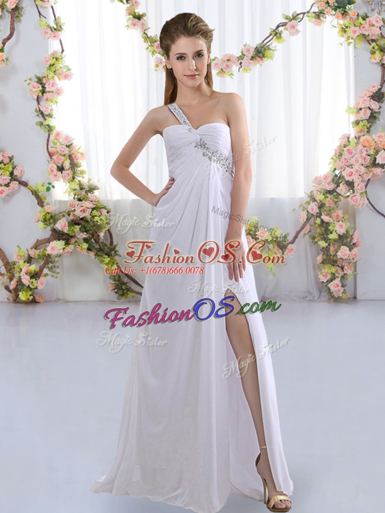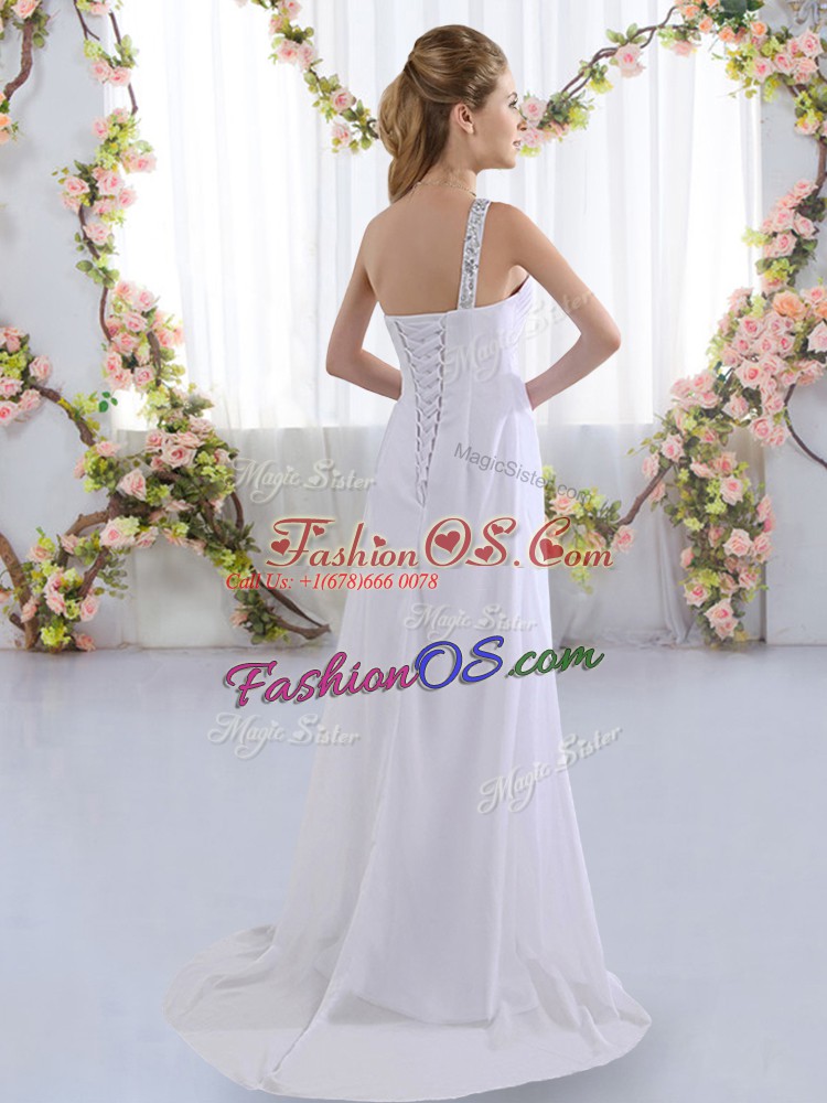 Lovely White Wedding Party Dress Prom and Party and Wedding Party with Beading One Shoulder Sleeveless Brush Train Lace Up