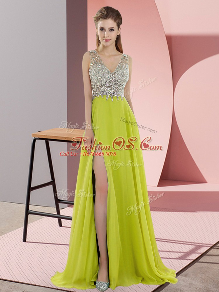 Lovely Yellow Green Empire Beading Prom Dress Zipper Chiffon Sleeveless