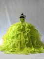 Lovely Yellow Green Lace Up Scoop Beading and Ruffles Quinceanera Gown Organza Sleeveless