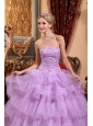 Lovery Lavender Quinceanera Dress Strapless Organza Beading Ball Gown