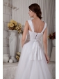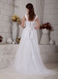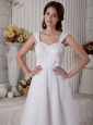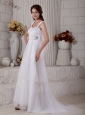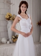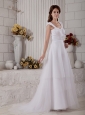 Low Cost A-line Straps Wedding Dress Brush Train Tulle Hand Made Flower and Ruch