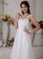 Home >  Wedding Dresses >  Low Cost Wedding Dresses > Low Cost A-line Straps Wedding Dress Brush Train Tulle Hand Made Flower and Ruch
