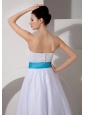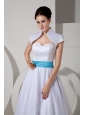 Low Cost A-line Sweetheart Wedding Dress Floor-length Taffeta Sash