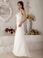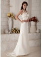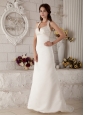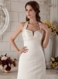Home >  Wedding Dresses >  Low Cost Wedding Dresses > Low Cost Column Halter Wedding Dress Brush Train Satin Ruch