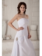 Low Cost Column Strapless Wedding Dress Floor-length Chiffon Beading and Ruch