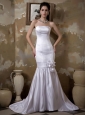 Low Cost Mermaid Strapless Wedding Dress Court Train Satin Hand Made Flower