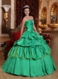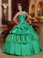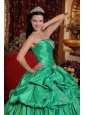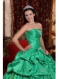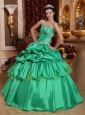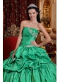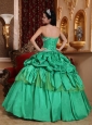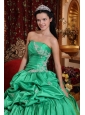 Low Price Apple Green Quinceanera Dress Strapless Taffeta Appliques Ball Gown