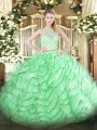 Home >  Quinceanera Dresses >  Beautiful Quinceanera Dresses > Low Price Apple Green Two Pieces Scoop Sleeveless Tulle Brush Train Zipper Lace and Ruffles Quinceanera Gown