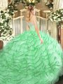 Low Price Apple Green Two Pieces Scoop Sleeveless Tulle Brush Train Zipper Lace and Ruffles Quinceanera Gown