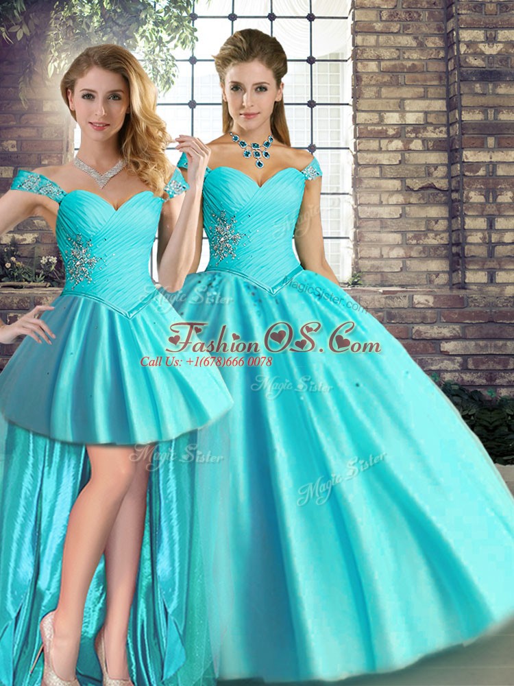 Home >  Quinceanera Dresses >  Detachable Quinceanera Skirts > Low Price Aqua Blue Off The Shoulder Neckline Beading 15 Quinceanera Dress Sleeveless Lace Up