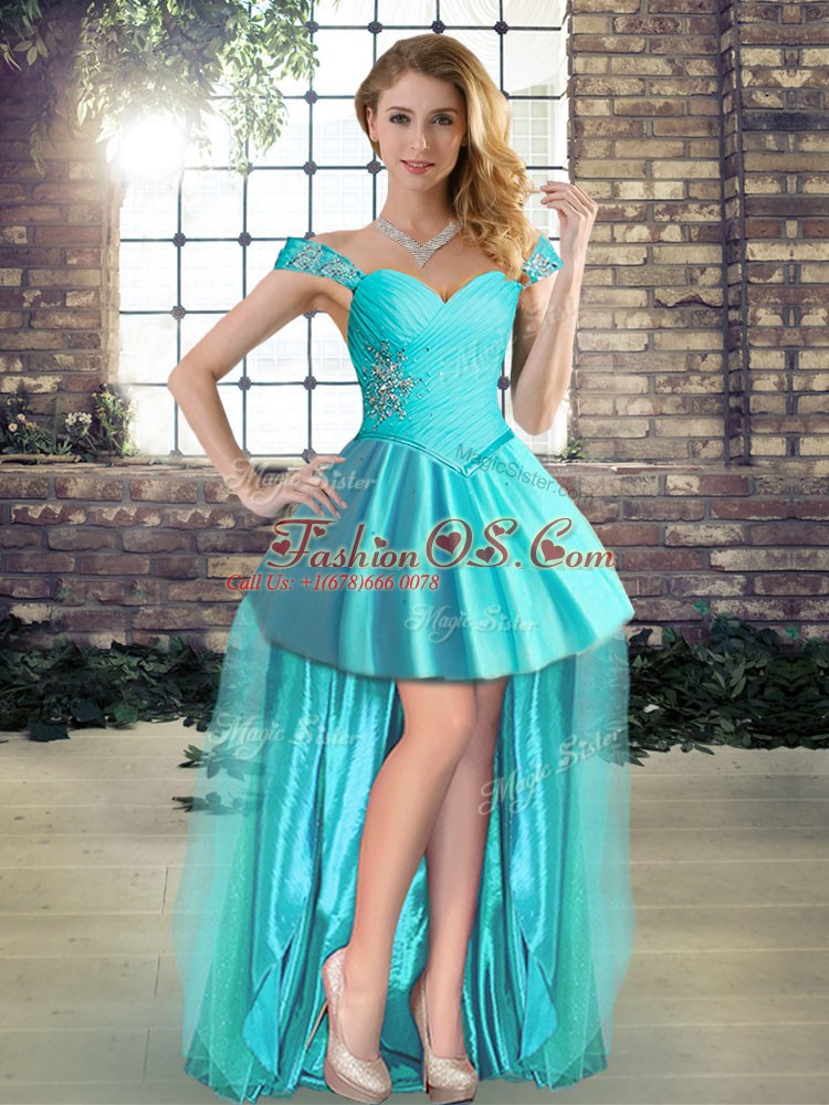 Low Price Aqua Blue Off The Shoulder Neckline Beading 15 Quinceanera Dress Sleeveless Lace Up