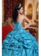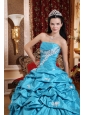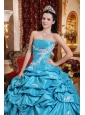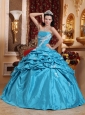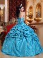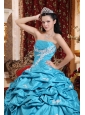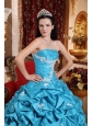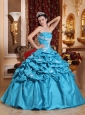 Low Price Aqua Blue Quinceanera Dress Strapless Taffeta Appliques Ball Gown