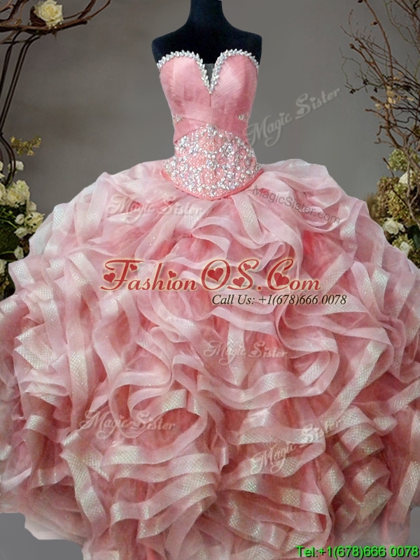 Home >  Quinceanera Dresses >  Fast Delivery Quinceanera Dresses > Low Price Beaded and Ruffled Sweet 16 Dress in Pink