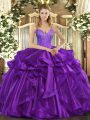 Low Price Beading and Ruffles Sweet 16 Dresses Eggplant Purple Lace Up Sleeveless Floor Length