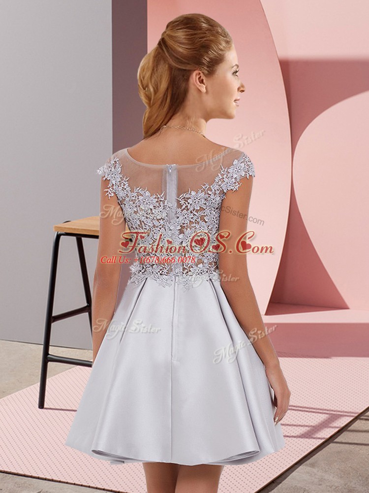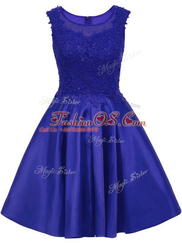 Low Price Blue Sleeveless Lace Mini Length Vestidos de Damas