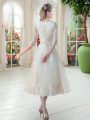 Low Price Champagne Lace Up Scoop Lace Prom Party Dress Tulle 3 4 Length Sleeve