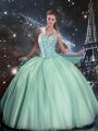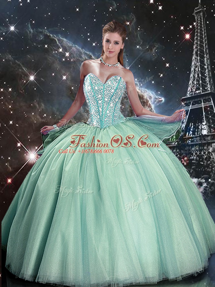 Low Price Floor Length Ball Gowns Sleeveless Turquoise Sweet 16 Dresses Lace Up