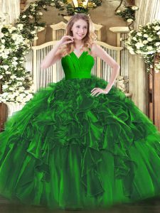 Low Price Floor Length Dark Green 15th Birthday Dress Organza Sleeveless Ruffles