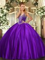 Low Price Floor Length Lace Up Quinceanera Gown Purple for Military Ball and Sweet 16 and Quinceanera with Beading
