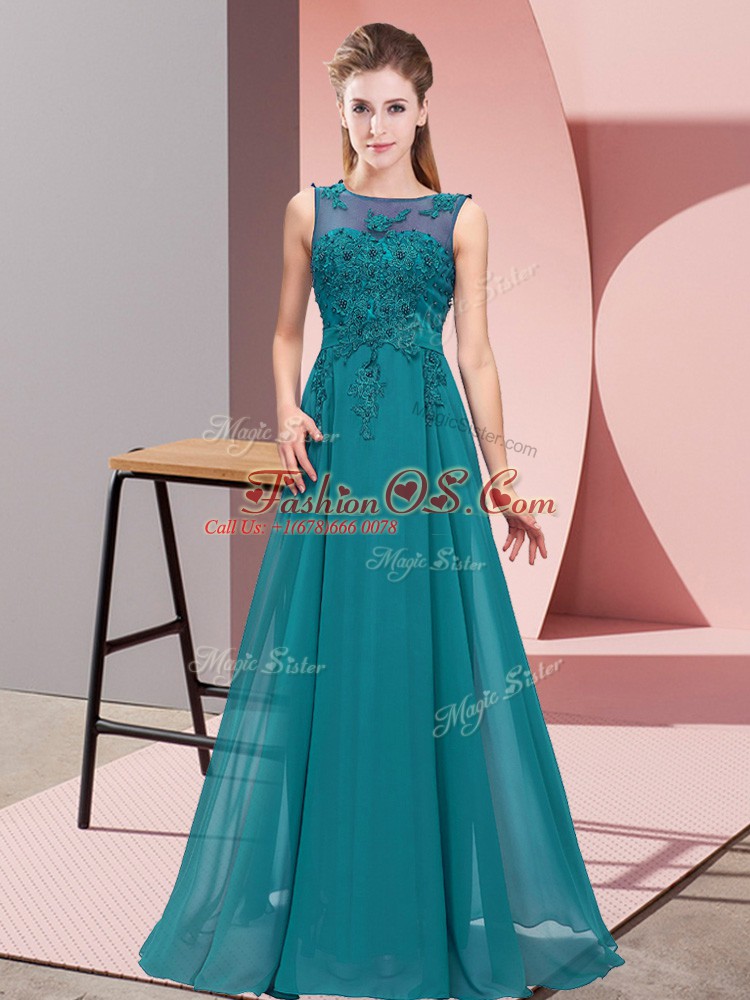 Low Price Floor Length Zipper Damas Dress Teal for Wedding Party with Beading and Appliques