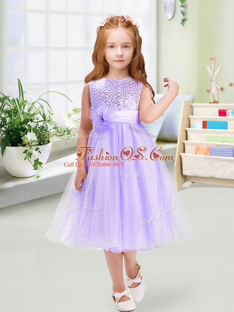 Low Price Lavender Zipper Scoop Sequins and Hand Made Flower Flower Girl Dresses for Less Organza Sleeveless