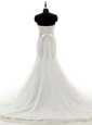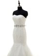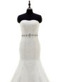 Low Price Mermaid With Train White Wedding Gowns Sweetheart Sleeveless Brush Train Lace Up