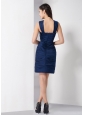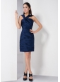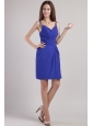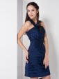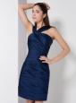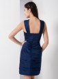 Low Price Navy Blue Column V-neck Ruch Bridesmaid Dress Mini-length Taffeta