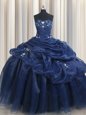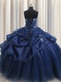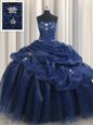 Low Price Navy Blue Sweetheart Neckline Appliques and Pick Ups Quinceanera Gowns Sleeveless Lace Up