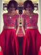 Low Price Off the Shoulder Red Sleeveless Satin Sweep Train Backless Celebrity Evening Dresses for Prom and Party