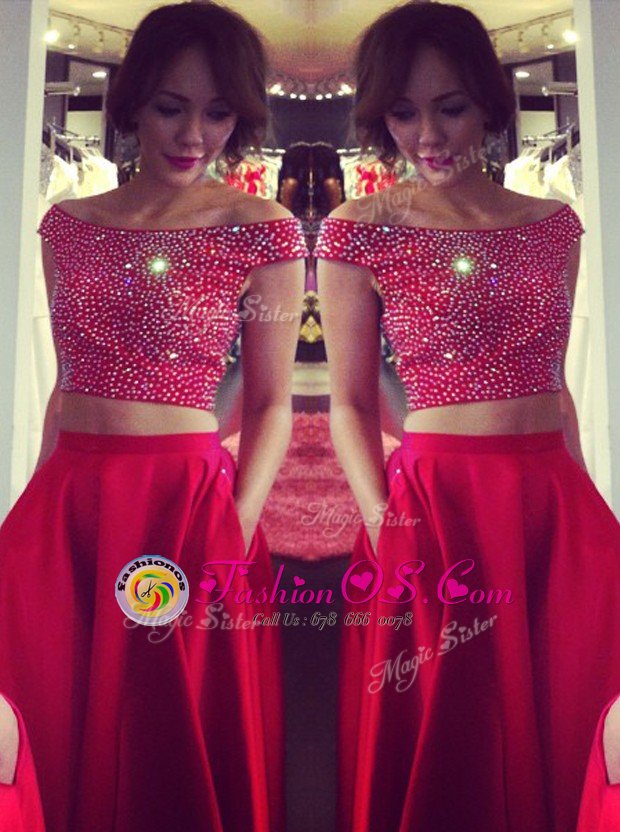 Home >  Special Occasion Dresses >  Celebrity Dresses > Low Price Off the Shoulder Red Sleeveless Satin Sweep Train Backless Celebrity Evening Dresses for Prom and Party