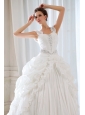 Low Price Princess Straps Beading and Appliques Ball Gown Wedding Dress Court Train Taffeta