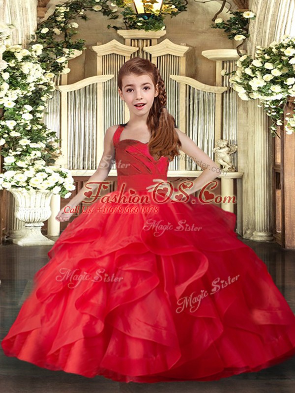 Home >  Special Occasion Dresses >  2019 Little Girl Pageant Dresses > Low Price Red Girls Pageant Dresses Party and Sweet 16 and Wedding Party with Ruffles and Ruching Straps Sleeveless Lace Up