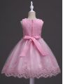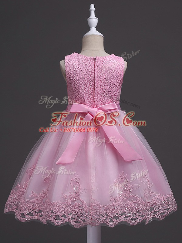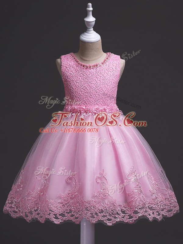 Low Price Rose Pink Zipper Scoop Lace Little Girls Pageant Gowns Tulle Sleeveless