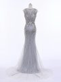 Low Price Scoop Cap Sleeves Tulle Evening Dress Beading Brush Train Zipper
