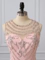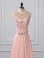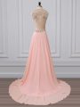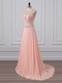 Low Price Scoop Sleeveless Chiffon Dress for Prom Beading Brush Train Side Zipper