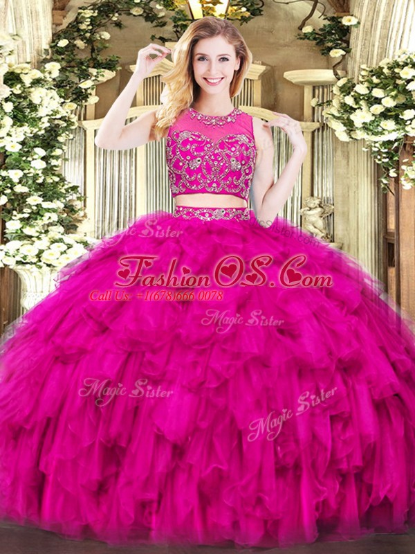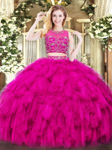 Low Price Scoop Sleeveless Tulle Vestidos de Quinceanera Beading and Ruffles Zipper