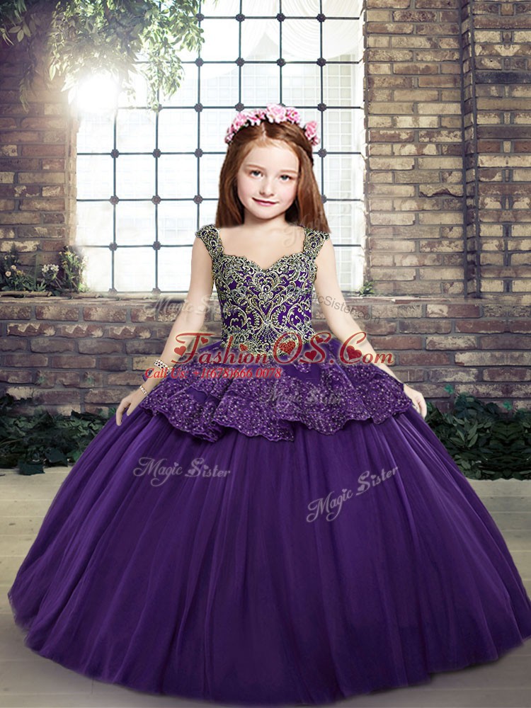 Low Price Sleeveless Beading and Appliques Lace Up Pageant Gowns For Girls