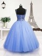 Low Price Sleeveless Floor Length Beading and Sequins Zipper Child Pageant Dress with Light Blue