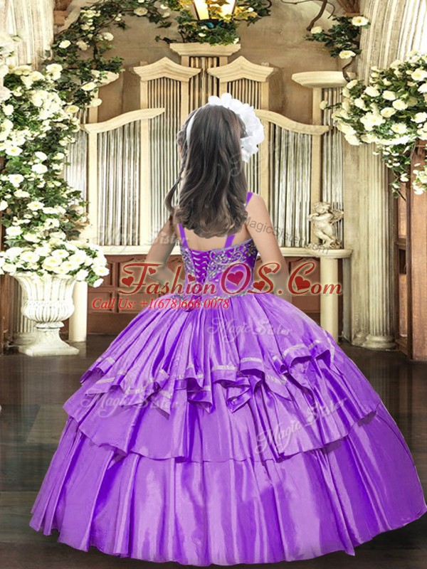 Low Price Sleeveless Floor Length Beading Lace Up Girls Pageant Dresses with Hot Pink