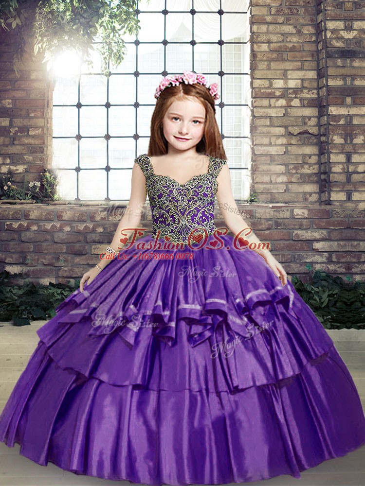 Low Price Sleeveless Lace Up Floor Length Beading Kids Pageant Dress