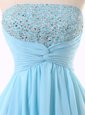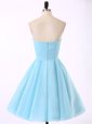 Home >  Prom Dresses >  Perfect Prom Dresses > Low Price Sleeveless Mini Length Beading and Sequins and Ruching Zipper Evening Dress with Blue