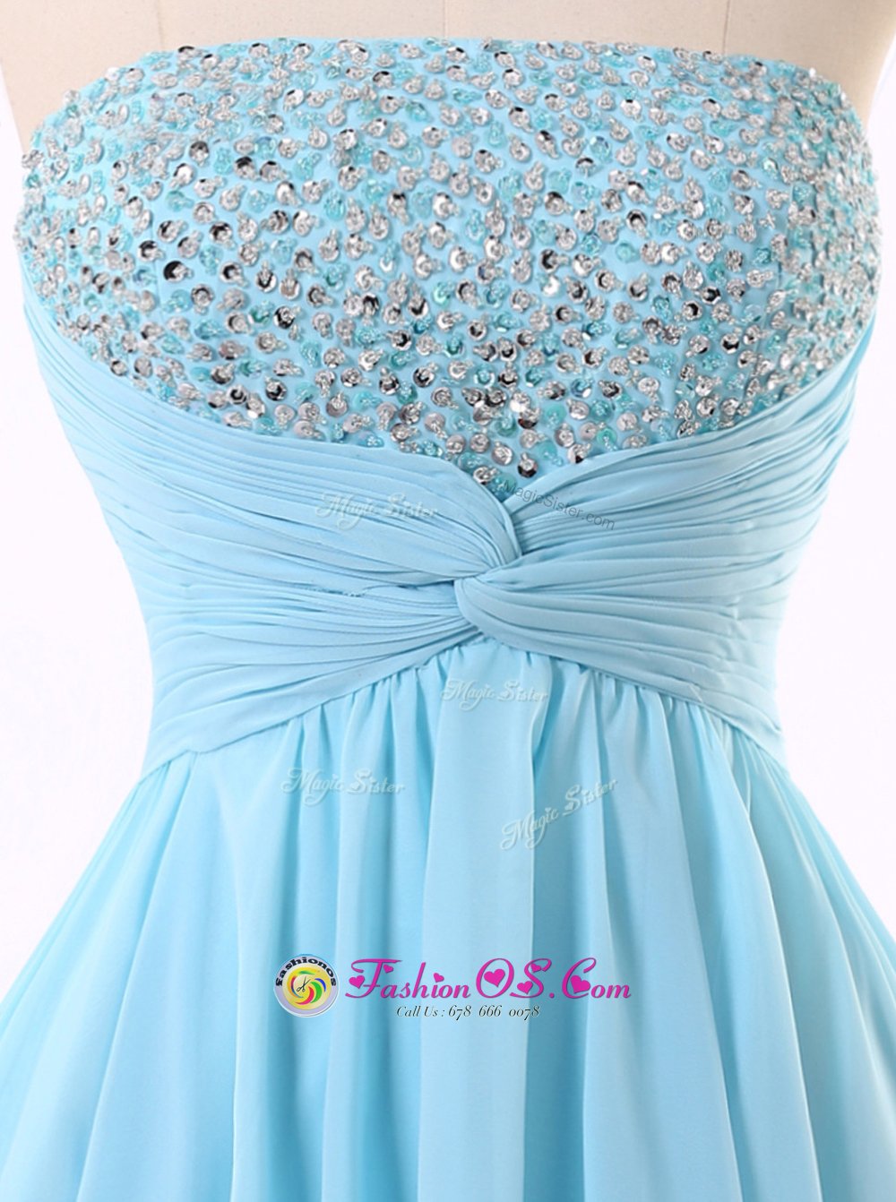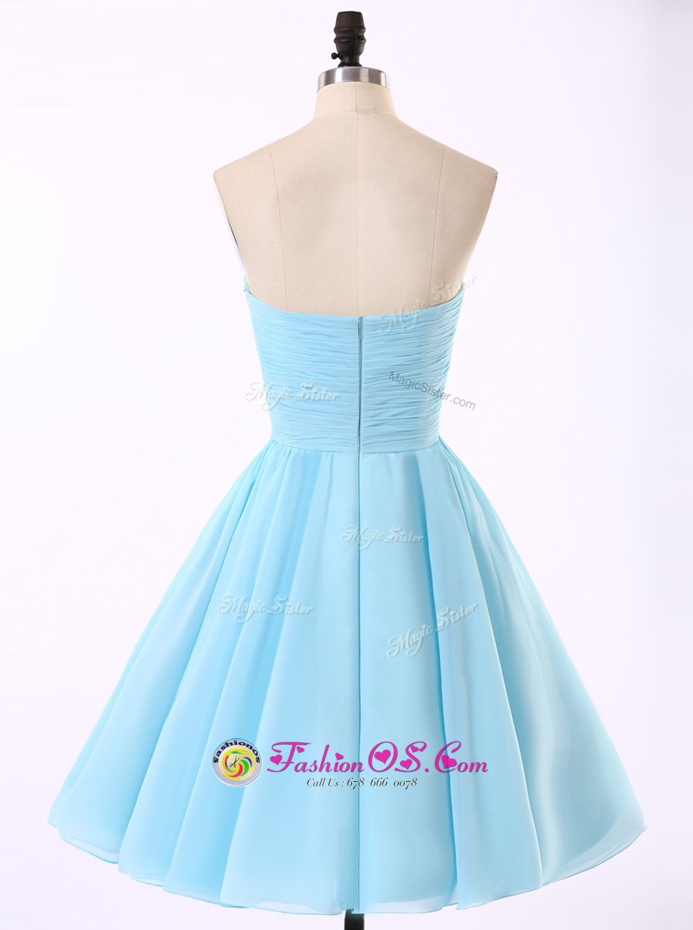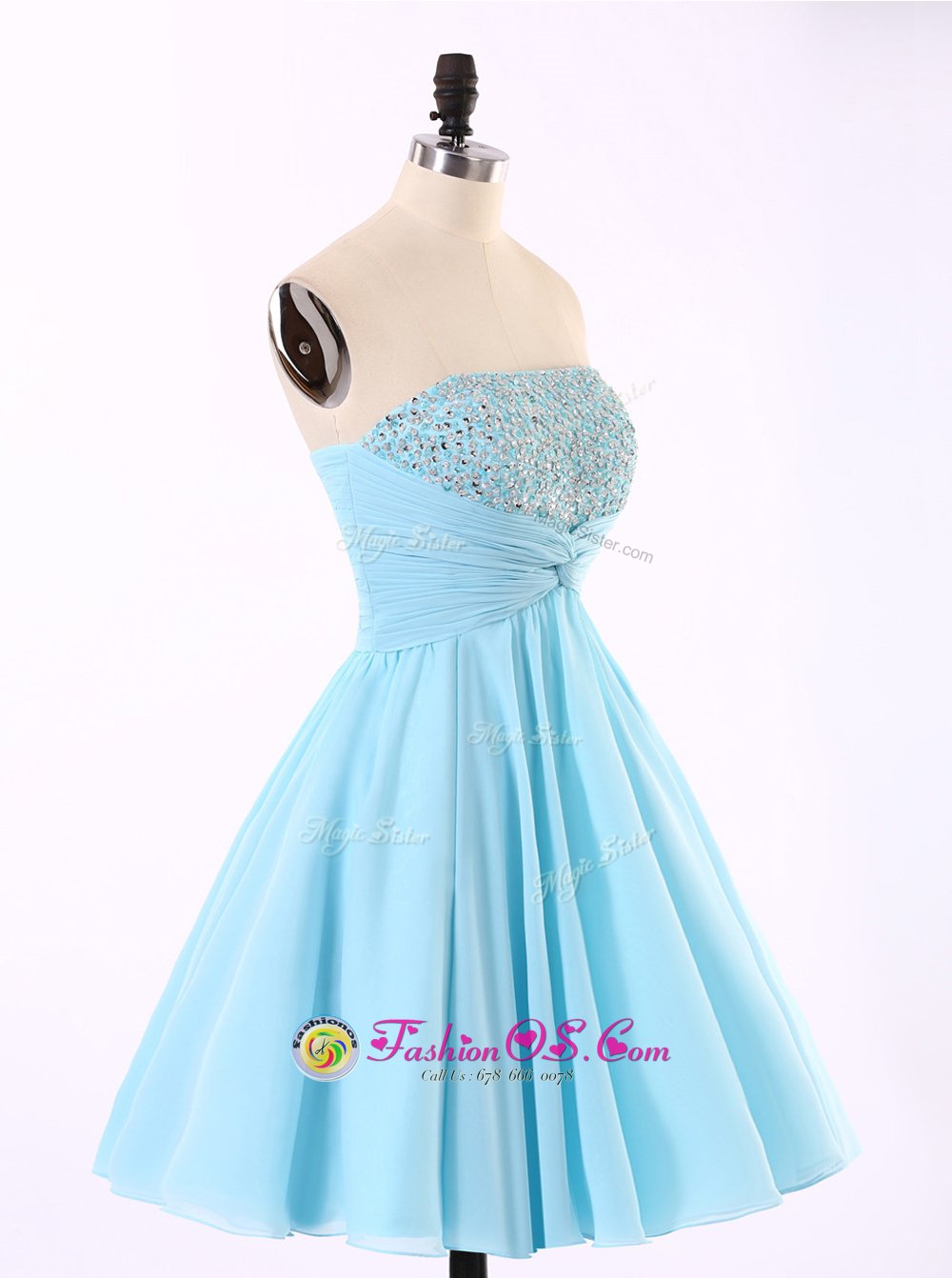 Low Price Sleeveless Mini Length Beading and Sequins and Ruching Zipper Evening Dress with Blue
