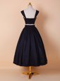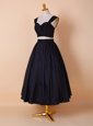 Low Price Straps Black Sleeveless Ruching Tea Length Mother Of The Bride Dress