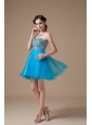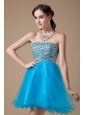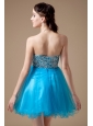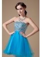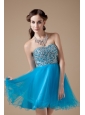 Low price Teal A-line Cocktail Dress Strapless Organza Beading Mini-length
